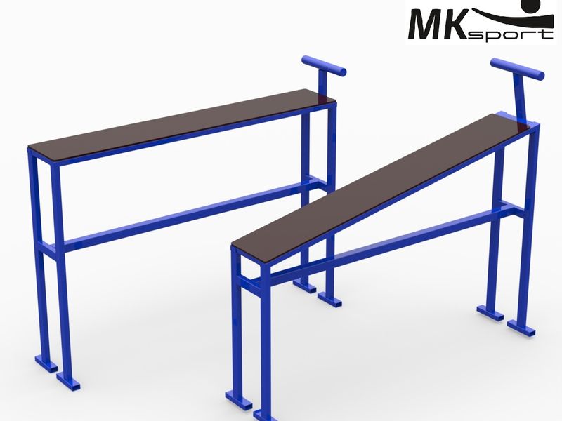Уличная скамья для пресса под бетонирование доступна в двух вариациях: прямая для стандартных тренировок и наклонная с увеличенной амплитудой движений для усложнения тренировки. Каркас скамьи изготовлен из профильных труб 40*25*2 мм, упор из круглой трубы 42*3 мм. Покрытие скамьи выполнено из влагостойкой ламинированной фанеры 9 мм. Стандартный цвет снаряда синий.
