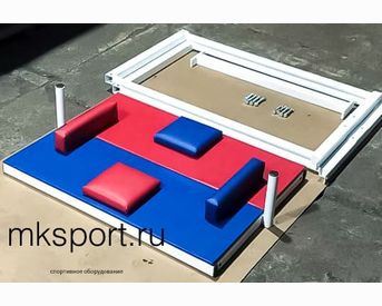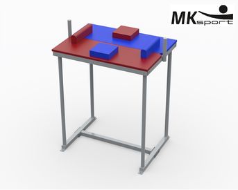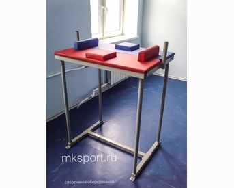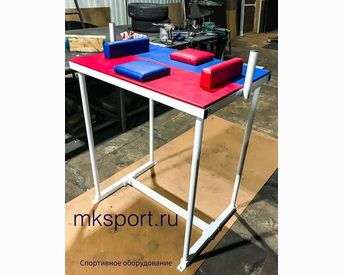 Стол для армрестлинга – оборудование, необходимое для комфортных и безопасных тренировок по армрестлингу. Каркас стола изготовлен из профильных труб 40*40*2 и 40*20*2 мм. Рукоятки для хвата выполнены из круглых труб 32*3 мм. Столешница, упоры для локтей и подушки обшиты кожзаменителем красного и синего цвета. Стандартный цвет металлической конструкции белый.