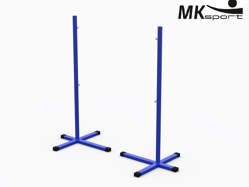 Передвижные стойки можно использовать для снаряжения как уличных, так и крытых бадминтонных кортов. Они выполнены из профильной трубы 60*40*2 мм и 40*40*2 мм. Для предотвращения попадания влаги внутрь конструкции и безопасности спортсменов основания опор закрыты пластиковыми заглушками. Стандартный цвет оборудования синий.